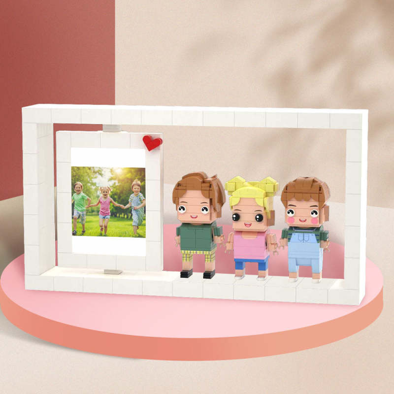 Creatief groeirecord voor kinderen fotolijst volledig lichaam verstelbaar 3 personen individueel aangepaste baksteen speelgoed fotolijst klein deeltjesblok