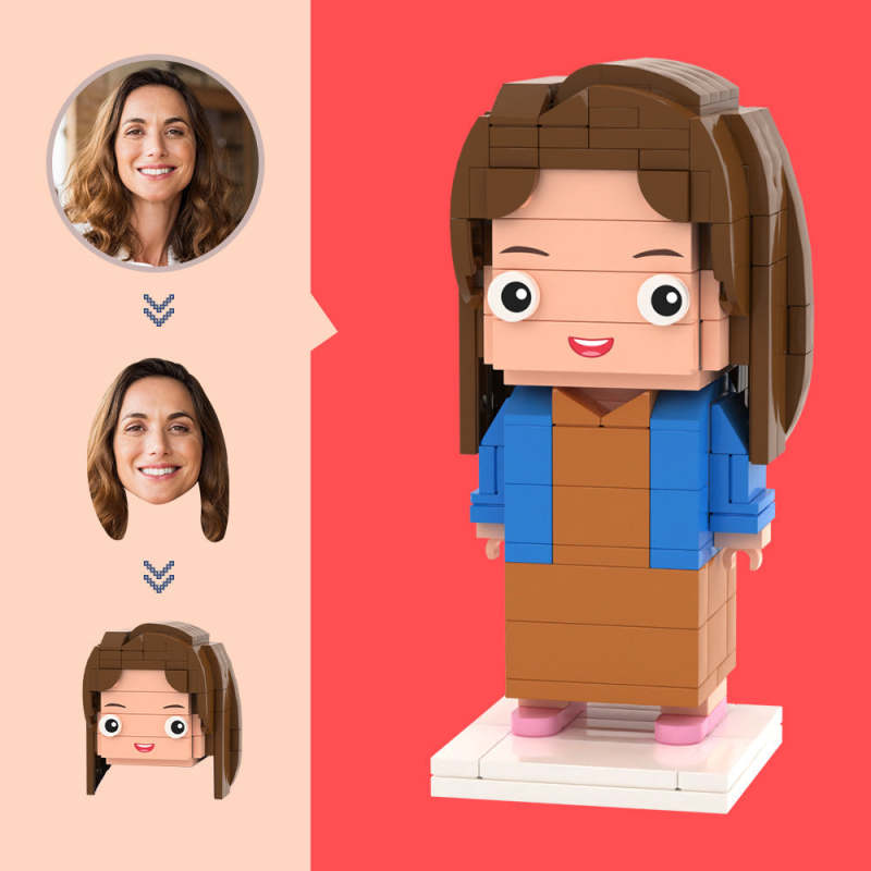 Aangepaste hoofdbruine lange rokfiguren,klein deeltjesblokspeelgoed,aanpasbare baksteenkunstcadeaus