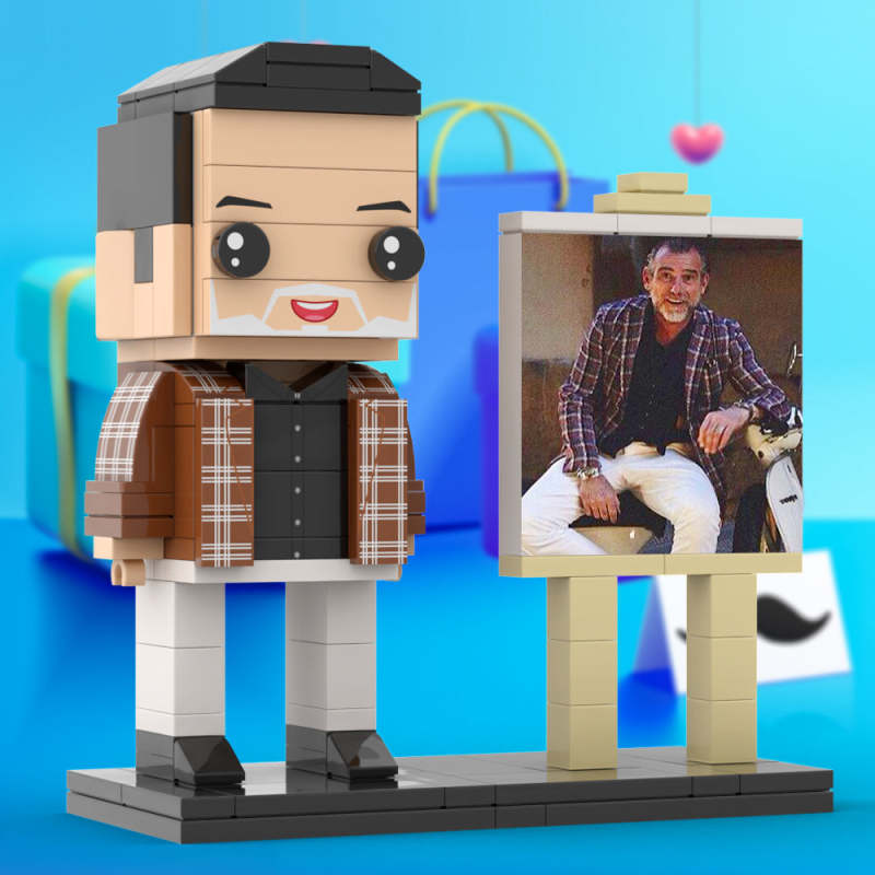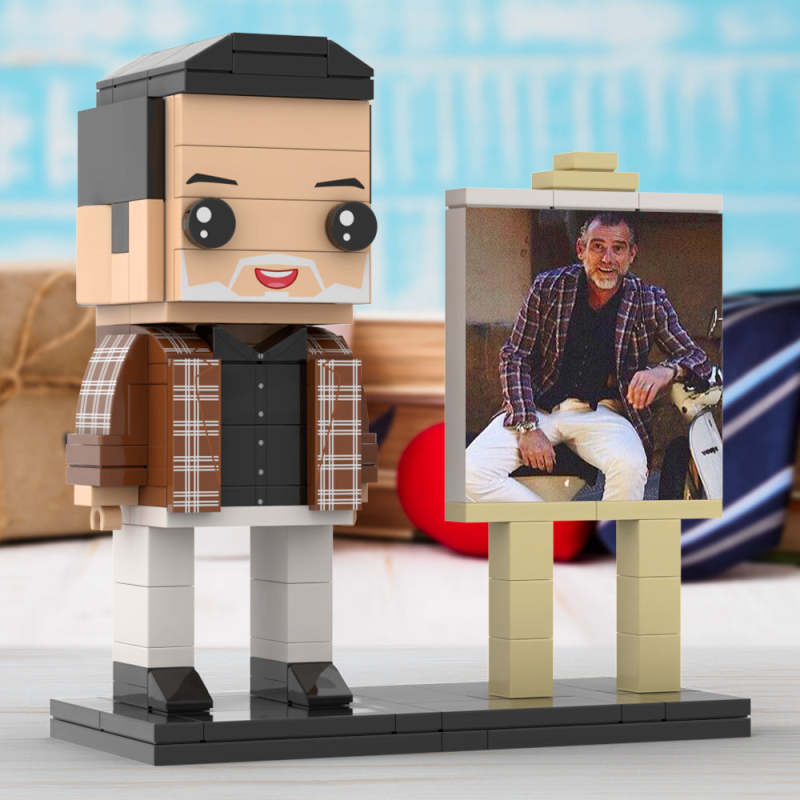 Aanpasbare 1-persoons Coole Papa In Klassiek Geruit Overhemd Aangepaste Baksteen Met Framefiguren Kleine Deeltjesblok Speelgoed Brick Me-figuren Voor Vaderdag