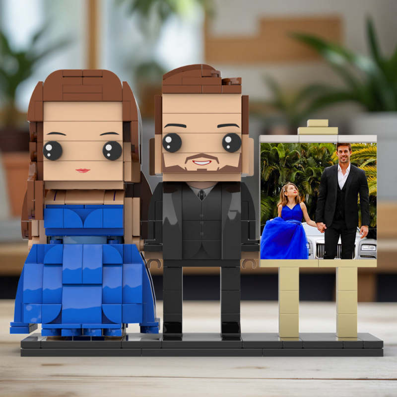 Volledig Lichaam Aanpasbare 2 Personen Vader En Zijn Dochter In Perfecte Blauwe Jurk Fotolijst Gepersonaliseerde Aangepaste Baksteenfiguren Klein Deeltjesblok Speelgoed Gepersonaliseerd Voor Vaderdag
