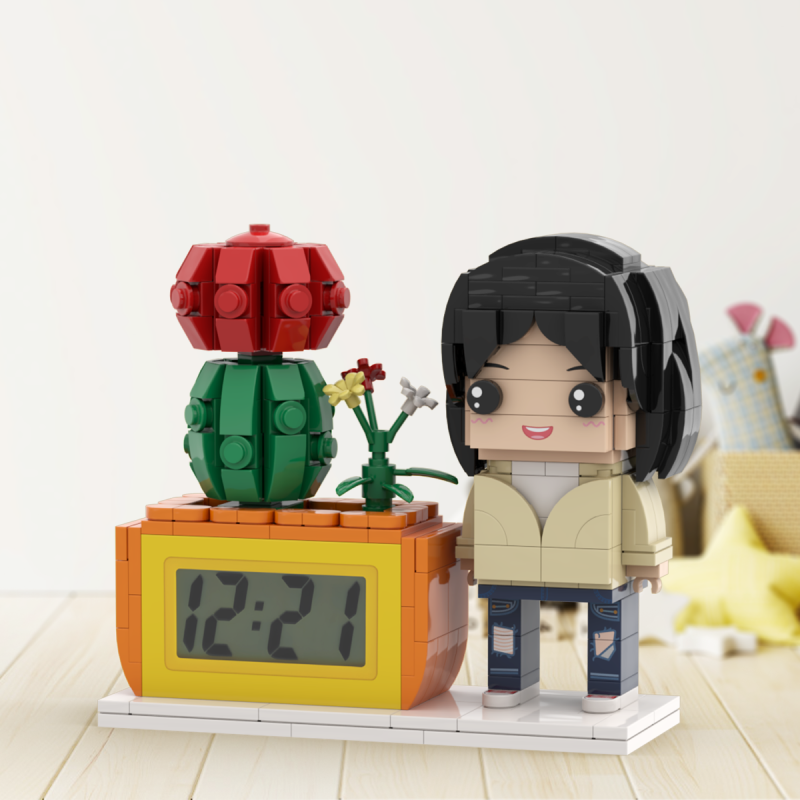 Cadeaus voor haar Aangepaste klok met op maat gemaakt stenen speelgoed,gepersonaliseerde figuren,potplanten en stenen klok