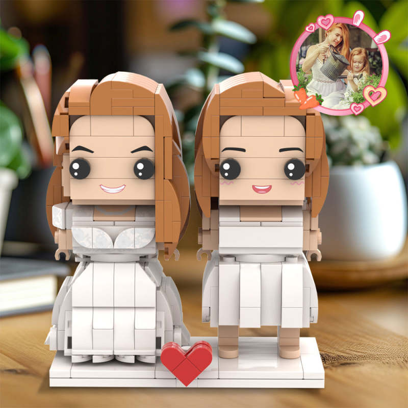 Moeder En Dochter Bakstenen Cijfers Aanpasbare Volledig Lichaam Witte Jurk 2 Personen Aangepaste Baksteenfiguren