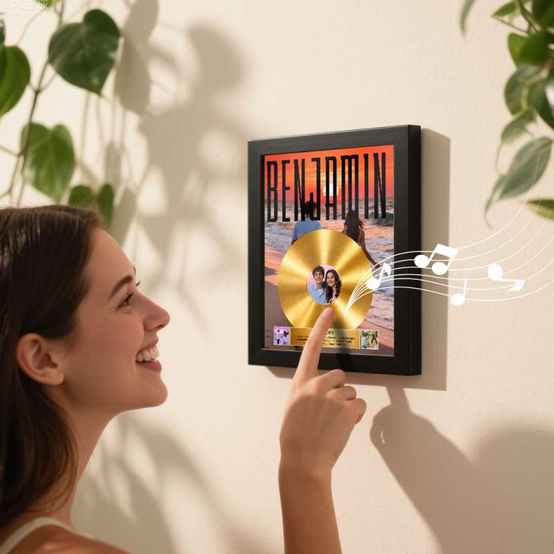 Met deze elegante, op maat gemaakte muziekplaat kunt u de titel van uw favoriete nummer, de naam van de artiest en een foto graveren, waardoor een uniek aandenken ontstaat dat uw persoonlijke universum viert. Een simpele klik om af te spelen - geen telefoon nodig.