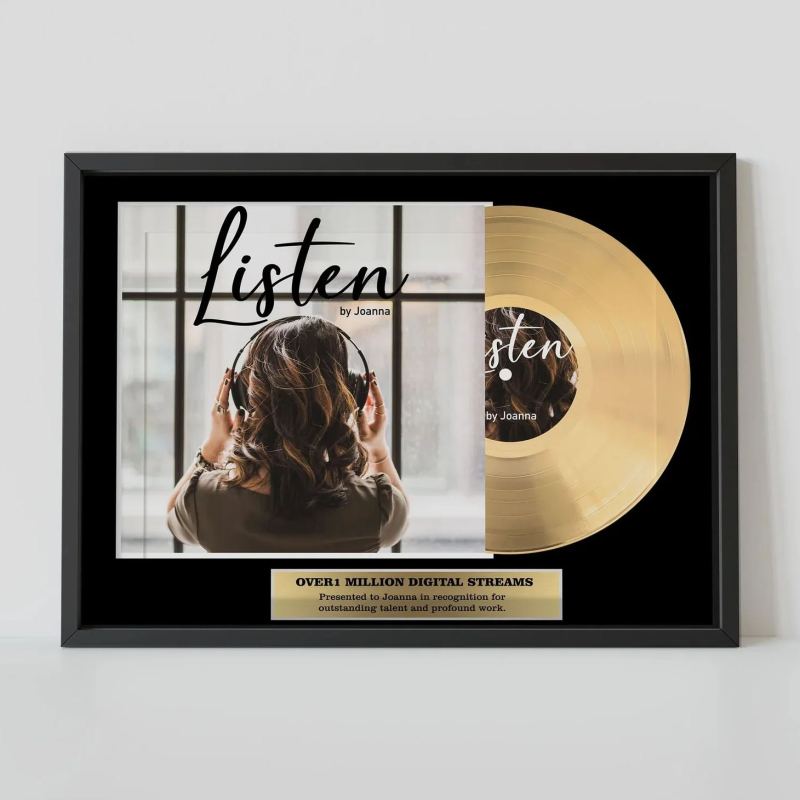 Op deze elegante, op maat gemaakte muziekplaat kun je de titel van je favoriete nummer, de naam van de artiest en een foto graveren, waardoor een uniek aandenken ontstaat dat je persoonlijke universum viert. Slechts een simpele klik om te spelen - geen telefoon nodig.
