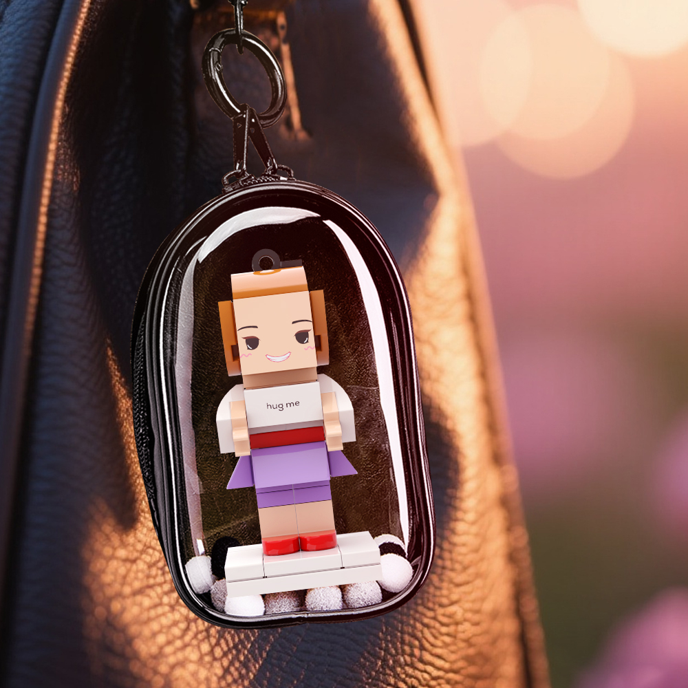 Gepersonaliseerde Hoofdstenen Figuur Hug Me, Aangepaste Ministenen Figuren, Kleine Deeltjesblok Sleutelhanger