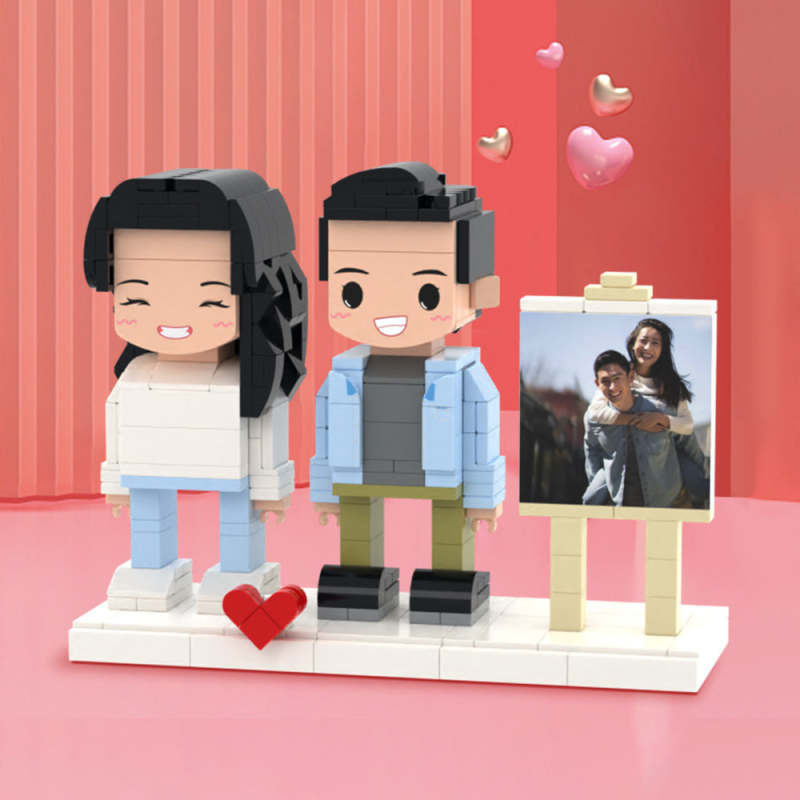 Surprise Gifts Full Body Customizable 2 People Photo Frame Custom Cute Brick Figures